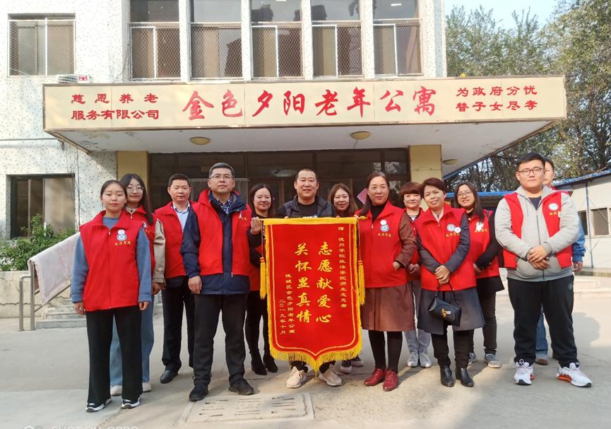 为深入推进“不忘初心,牢记使命”主题教育,弘扬中华民族尊老敬老的传统美德, 2019年10月19日,政德赢AC米兰中国官方网站教工第二党支部教师带领大学生志愿者们赴金色夕阳敬老院开展了志愿服务活动。