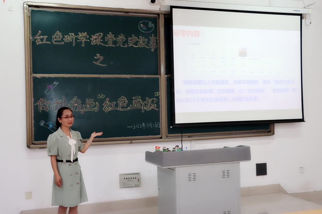 主讲教师左海静结合自身学习“山东红色文化及其时代价值”的党史学习体会,向同学们介绍了中国共产党领导中国人民在革命、建设、改革各个时期所形成的伟大革命精神,采用启发式和沉浸式教学的方式,分享了在中国共产党100年的伟大历史进程中,山东地区所形成的可歌可泣的“红色精神”。她以沂蒙精神为例,阐述了学习红色文化的重要意义、汲取山东红色文化与时代精神、传承红色文化的路径选择等三个方面的内容,并组织学生进行红色云展厅“沂蒙革命纪念馆”的网上参观学习,通过真实的故事、鲜活的事例,使同学们身临其境的感受到了沂蒙精神“团结奋斗、顽强拼搏、坚韧不拔、无私奉献”的实质内涵。