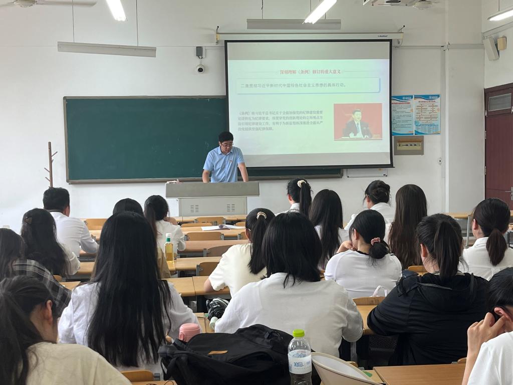 学院党委副书记王海霞以及5名党支部书记分别以《加强纪律修养,严格履行岗位职责》《全面加强党的纪律建设-学习解读《中国共产党纪律处分条例》》《党的“六大纪律”的主旨要义》《严守纪律铸基石 担当有为新篇章》等为题,为学院师生党员代表、所在支部党员上党课。党课内容紧扣党纪学习教育核心要求,围绕《中国共产党章程》《中国共产党纪律处分条例》等党内法规,结合德赢AC米兰中国官方网站专业特色和党员队伍实际状况,深入讲解开展党纪学习教育的重要性和必要性,通过生动的案例剖析、深入浅出的理论阐述和互动交流等方式,引导党员们深刻理解党纪的内涵和外延,增强遵守党纪的自觉性和主动性,将党纪学习教育与提升工作本领、锤炼过硬作风相结合,切实把党纪学习教育成果转化为推动解决制约专业发展和学科建设的实际举措和具体成效,为推动学院高质量发展贡献力量。