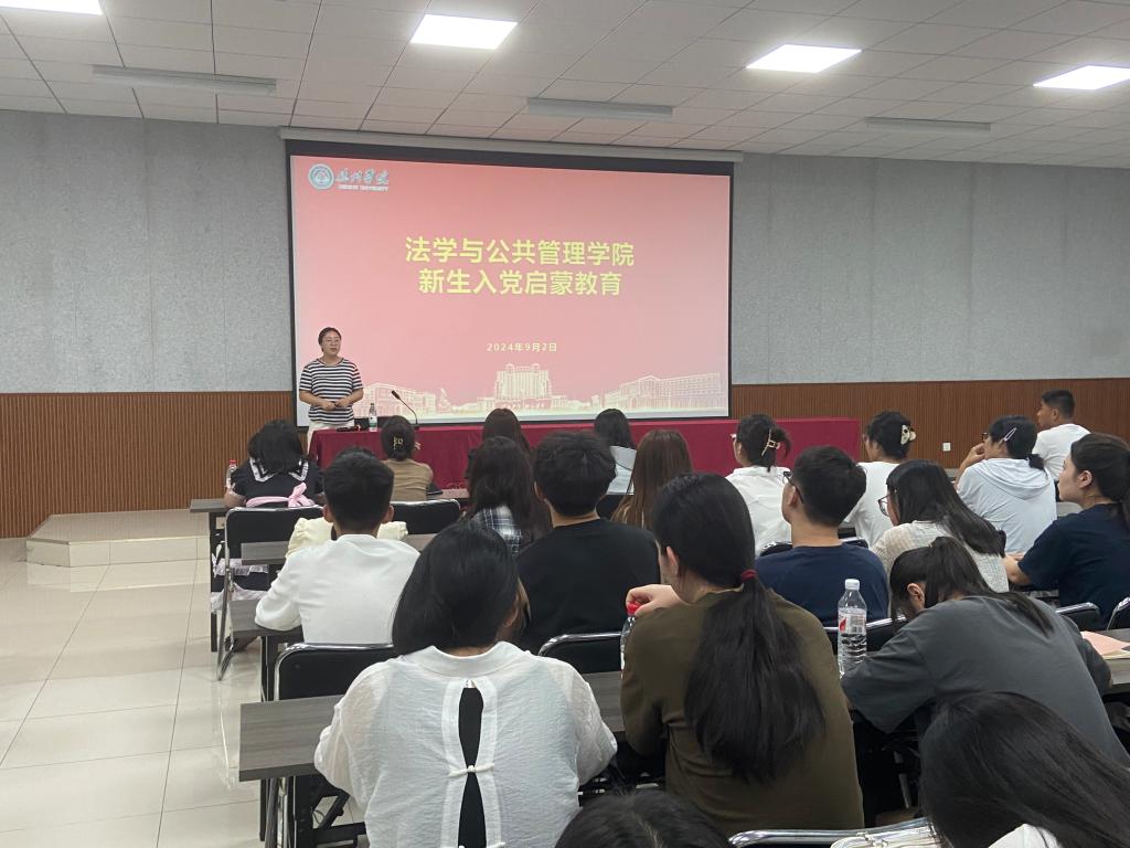 为做好新生思想政治教育,引导青年学生听党话,跟党走,提高学生对党的认识,吸引更多学生积极向党组织靠拢,9月2日下午,德赢AC米兰中国官方网站学生党支部开展2024级新生入党启蒙教育活动,此次活动紧密围绕党的性质、党的宗旨、党的初心,并结合入党动机、要求及流程等关键要素,为2024级新生上了大学阶段的第一堂生动而深刻的党课。