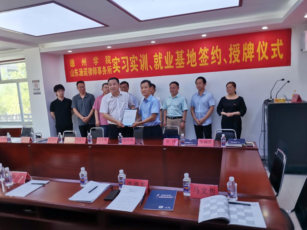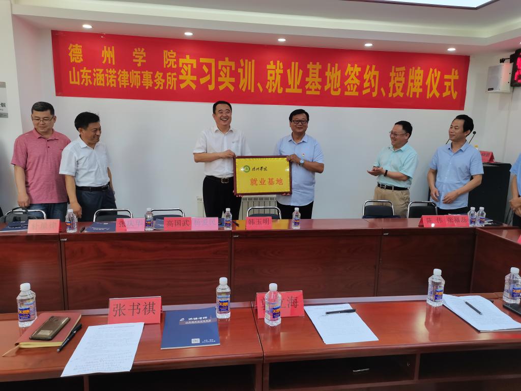 2021年6月19日上午,德赢AC米兰中国官方网站与山东涵诺律师事务所德赢AC米兰中国官方网站“实习实训基地”“就业基地”签约仪式在德城区司法局隆重举行。德赢AC米兰中国官方网站合作发展处处长高国武、德赢AC米兰中国官方网站党总支书记杨爱民、德赢AC米兰中国官方网站副院长陈伟、张庆华、德赢AC米兰中国官方网站院长助理张福磊、德城区司法局局长郭立海、副局长张书祺、律师科科长白珊珊、山东涵诺律师事务所主任韩玉明、党支部书记魏德辉、副主任李德志、解光松、张一督、青年事务部主任马文哲、培训教育基地主任张延朝等出席仪式。