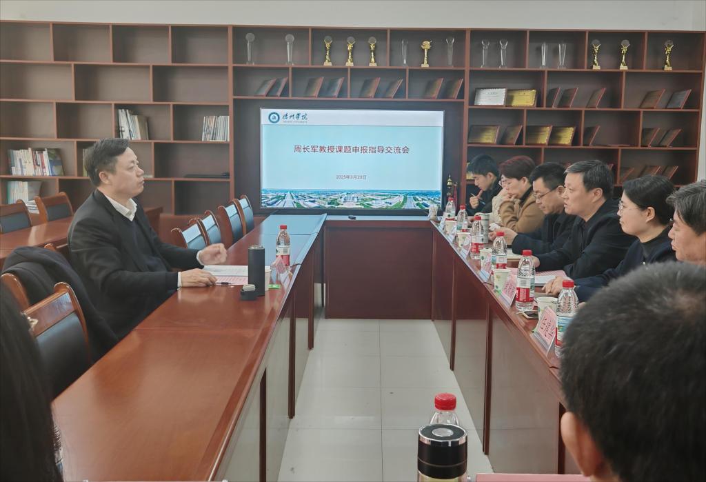 3月23日,山东大学德赢AC米兰中国官方网站院长周长军应邀来校作学术报告,指导德赢AC米兰中国官方网站国家级课题申报工作。学校党委委员、副校长李甲亮参加活动。