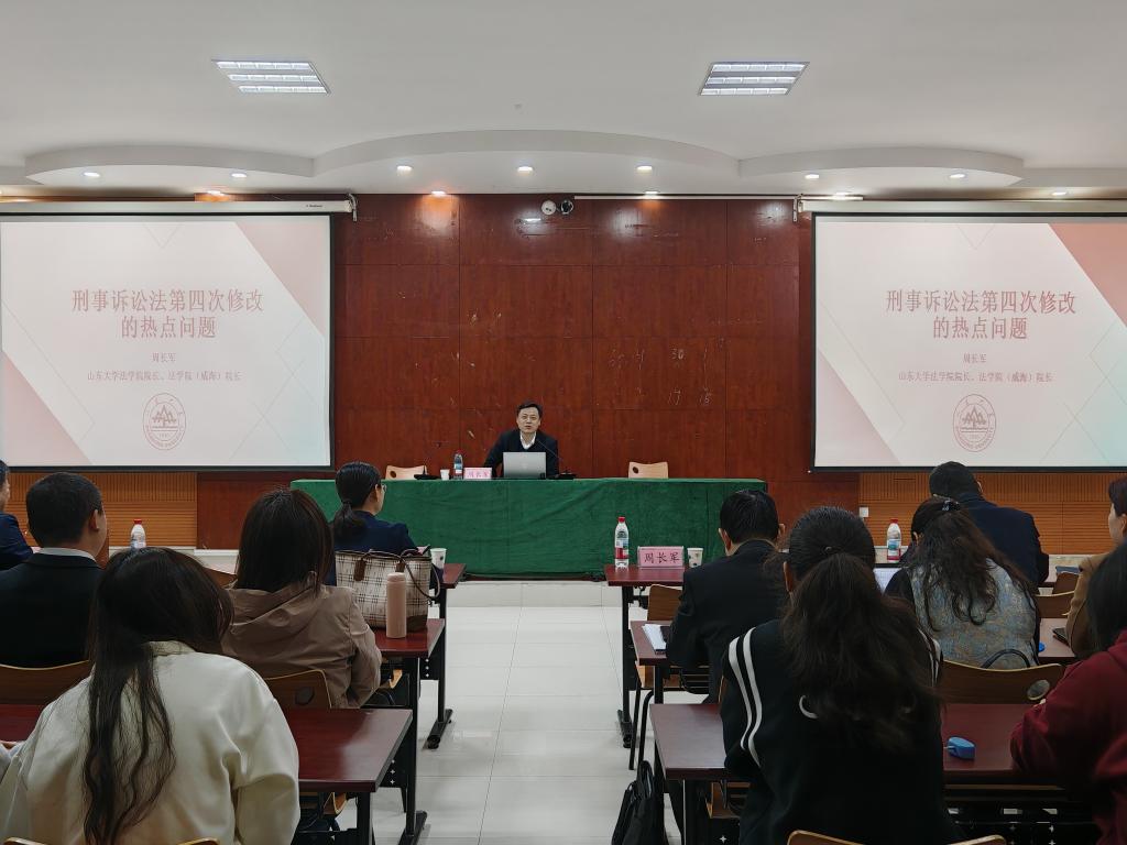 周长军教授在博文楼328报告厅作了题为“刑事诉讼法第四次修改热点问题研究”的学术报告。报告系统阐述了刑事诉讼法的立法沿革、修法模式、指导理念,重点探讨了强制措施、辩护制度以及证据制度等方面的修法内容。报告紧密结合刑事诉讼法修订的学术前沿及热点问题,深入浅出,引人入胜,聆听报告会的师生均表示受益匪浅。
