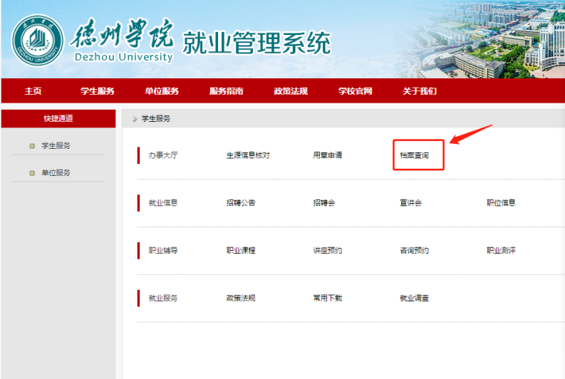 1.登录德赢AC米兰中国官方网站就业管理系统。请点击“学生服务”