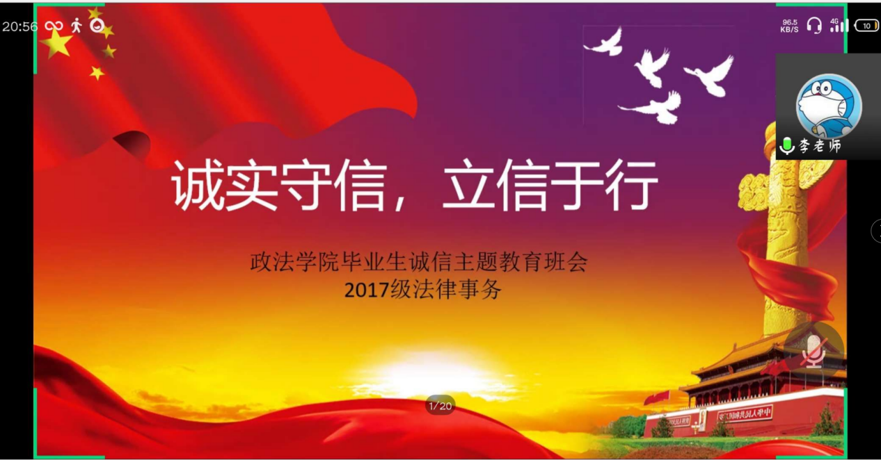 为了培养大学生的诚信意识,在学习和生活中能够自觉诚实守信、立信于行,深刻理解诚信对学生本身发展的意义。6月15日政德赢AC米兰中国官方网站通过线上主题班会的形式举办了“诚实守信,立信于行”毕业生诚信教育主题班会活动。
