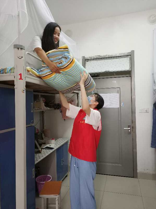 活动前,志愿者们提前到达学长学姐们的宿舍楼下,志愿者负责人将志愿者们分配成四个小组,分配好各自工作,进入毕业生宿舍后,志愿者主动帮助毕业生收拾行李、清理垃圾,并帮助他们搬运行李。毕业生宿舍基本打扫完毕后,志愿者们将毕业生钥匙收齐,对宿舍卫生进行检查。之后毕业生将一些资料书或生活用品赠送给了志愿者,向志愿者们表示感谢同时,又是一次薪火相传的过程。