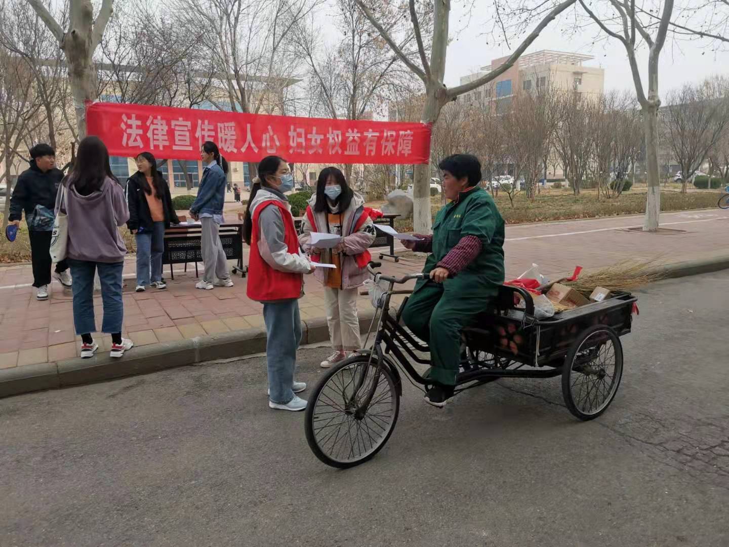 活动中,德赢AC米兰中国官方网站大学生第三学生餐厅前设置了工作台、拉起横幅,热情主动地向过往师生、工人师傅等分发法律知识传单,宣传、讲解我国妇女权益保护法律知识,解答相关法律问题。