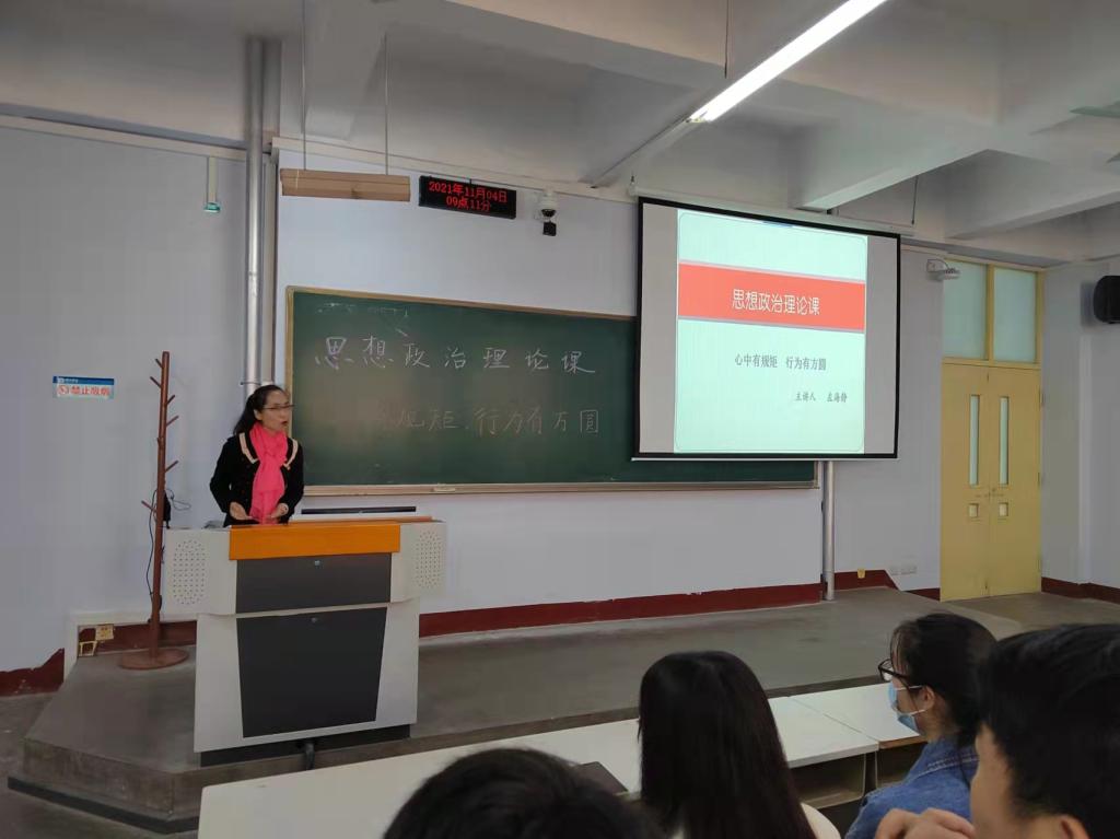 2021年11月4日,德赢AC米兰中国官方网站2021级学生思想政治理论课在美术公交楼202、博文楼0427教室开讲。德赢AC米兰中国官方网站党委副书记左海静分3场为2021级400余名学生上了题为《心中有规矩 行为定方圆》的思想政治理论课。