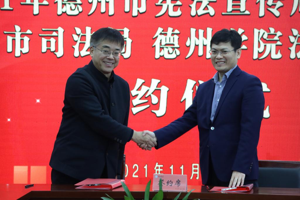 活动中,副校长李永平和司法局局长李福辉共同签署了德州市司法局和德赢AC米兰中国官方网站法治共建协议。