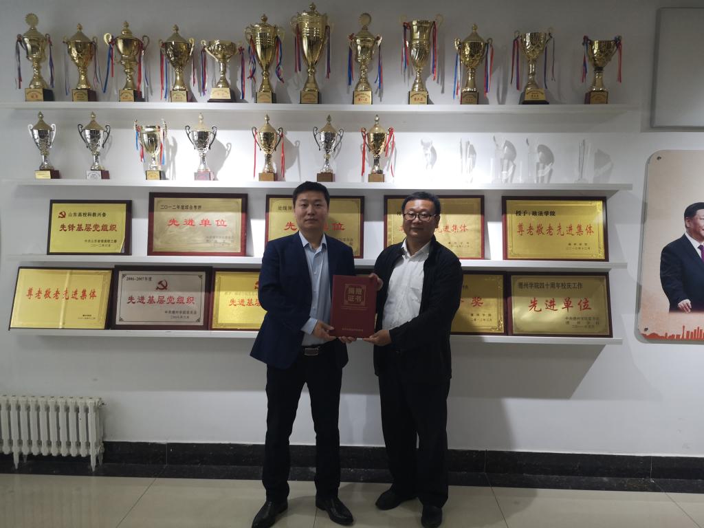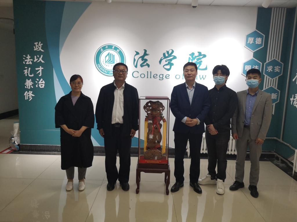 2022年5月11日,德赢AC米兰中国官方网站建校51周年之际,浙江靖霖(济南)律师事务所副主任朱明志一行2人来访德赢AC米兰中国官方网站,进行工作交流,并捐赠木如意一件,祝贺德赢AC米兰中国官方网站51周年华诞,祈愿德赢AC米兰中国官方网站事业发展如意顺遂。