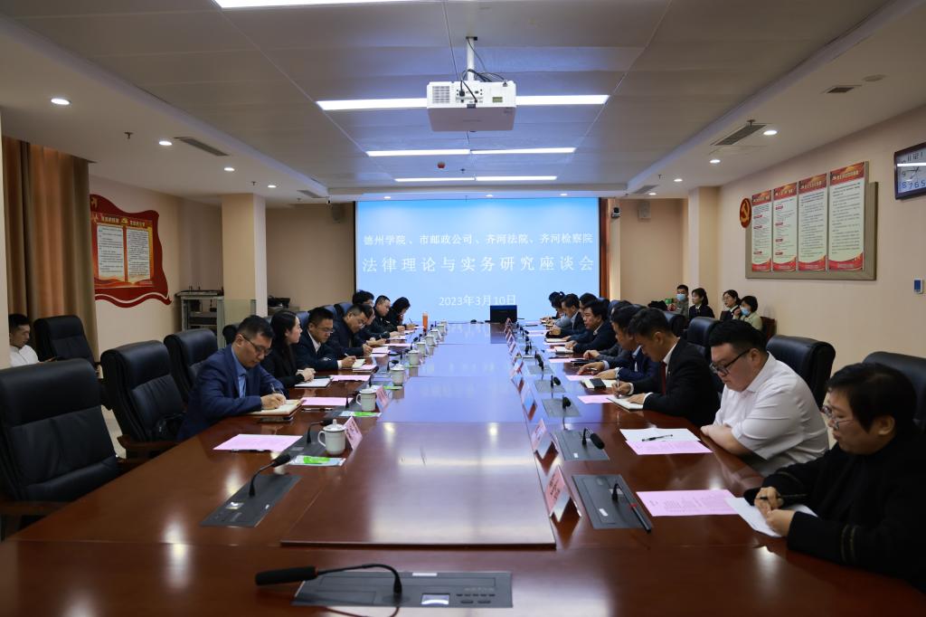 调研组先行参观了齐河县人民法院黄河生态城法庭和齐河县人民检察院公益诉讼生态修复示范基地,了解生态城法庭和公益诉讼生态修复基地建设及运行情况。随后,在齐河法院机关召开座谈会,围绕德赢AC米兰中国官方网站与齐河县人民法院、人民检察院深入合作,如何为黄河流域生态保护和高质量发展提供法律保障,以及集约送达工作,从法律理论与实务层面展开集中研讨。