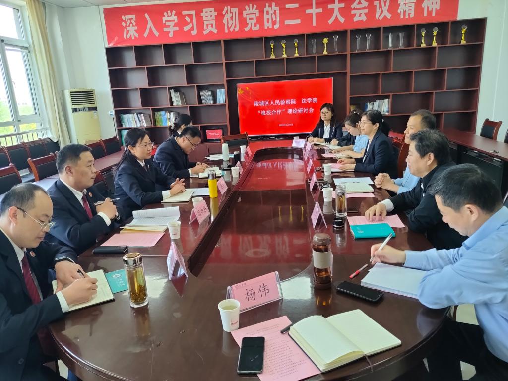 会议由王海霞书记主持。陈伟院长介绍了德赢AC米兰中国官方网站教研、科研、社会服务等工作情况。陵城区人民检察院检察长李茜介绍了陵城区人民检察院的发展历程和业务工作情况。