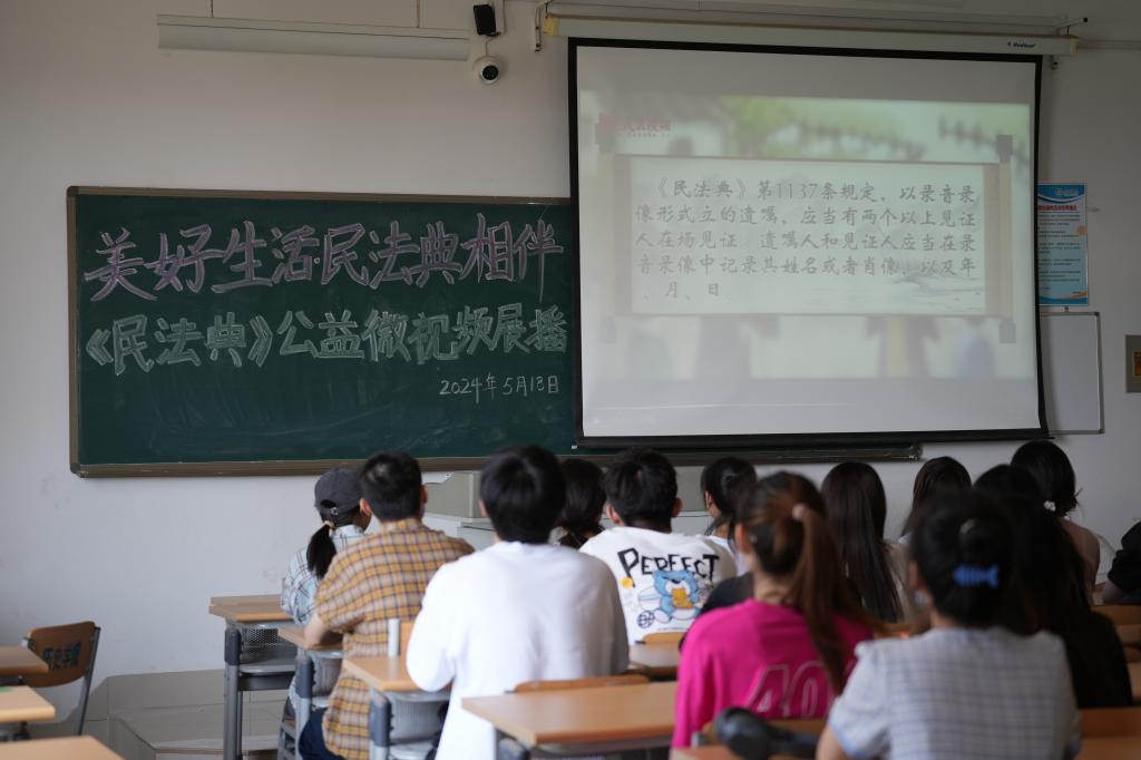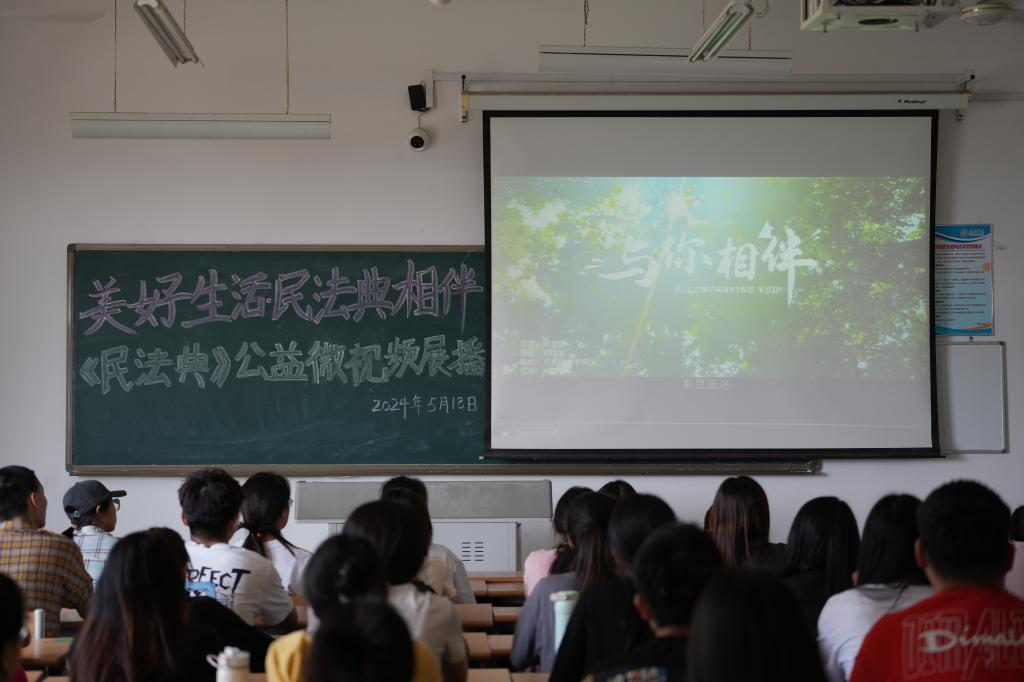 2024年5月是全国第4个“民法典宣传月”,为深入实施“八五”普法规划,贯彻落实习近平法治思想,弘扬社会主义法治精神,带领广大学生学习民法典、宣传民法典,运用民法典,5月18日,德赢AC米兰中国官方网站“美好生活·民法典相伴”民法典公益微视频展播活动在博文楼417教室举行,来自全校19个学院的40余名学生参加观看。