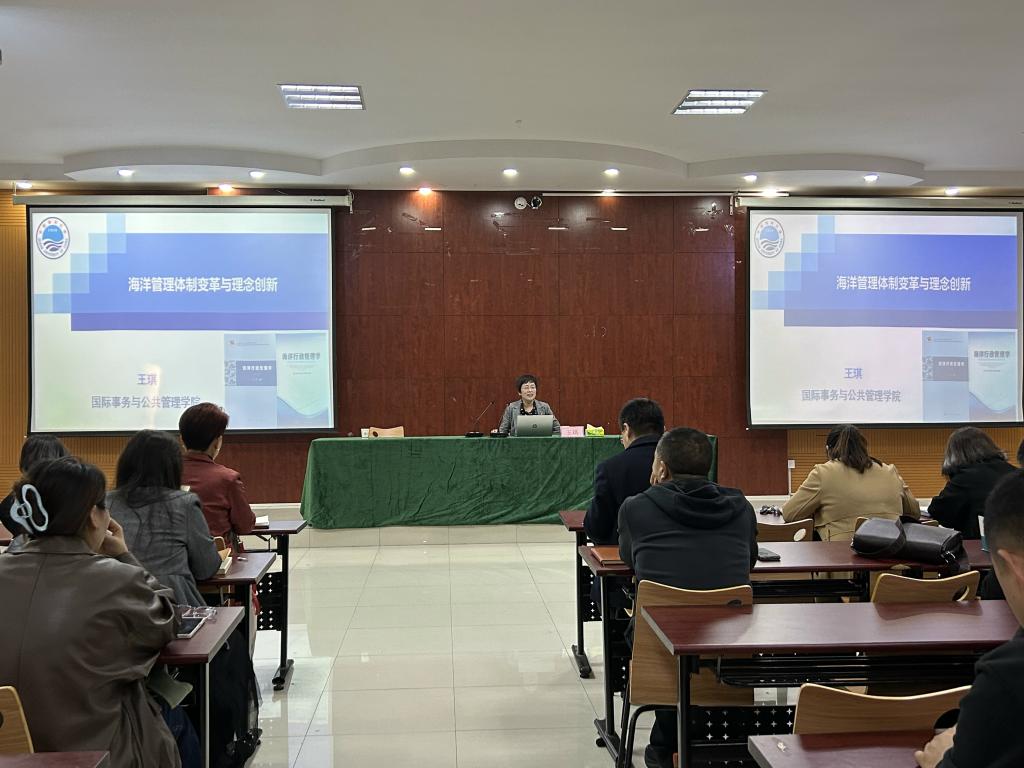 王琪教授首先在博文楼439会议室与德赢AC米兰中国官方网站教师进行了座谈交流。王琪教授对5位教师的课题申报书逐一进行了指导并提出进一步完善的意见建议,同时对德赢AC米兰中国官方网站开展有组织科研、加强课题项目培育提出了工作建议。王琪教授还以中国海洋大学公共管理学科建设发展历史为例,对德赢官网公共管理学科的建设与发展提出针对性的建议。座谈交流结束后王琪教授在博文楼328报告厅作了题为《海洋管理体制变革与理念创新》的学术报告。报告在阐释认知海洋、经略海洋,海洋属性及其价值的基础上重点探讨了我国海洋管理体制的变革,并对未来海洋管理的理念创新提出了新的展望。报告通俗易懂、深入浅出,兼具理论性与实践性。德赢AC米兰中国官方网站师生200余人聆听了报告。