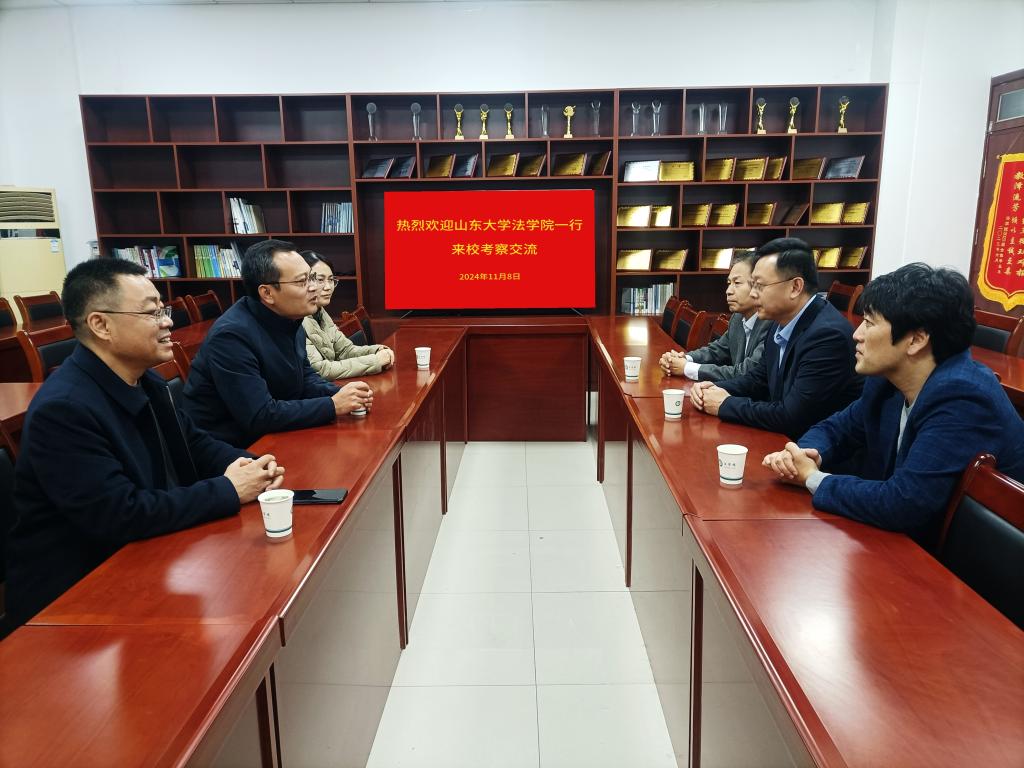 11月8日下午,山东大学德赢AC米兰中国官方网站党委书记于向明、院务委员会常务副主任齐向东、院社会合作办公室副主任巩合吉一行来我校德赢AC米兰中国官方网站考察交流。校党委委员、副校长蒋涛涛接待于向明一行并进行座谈交流,德赢AC米兰中国官方网站党政班子成员及及相关科室负责人参加座谈交流。