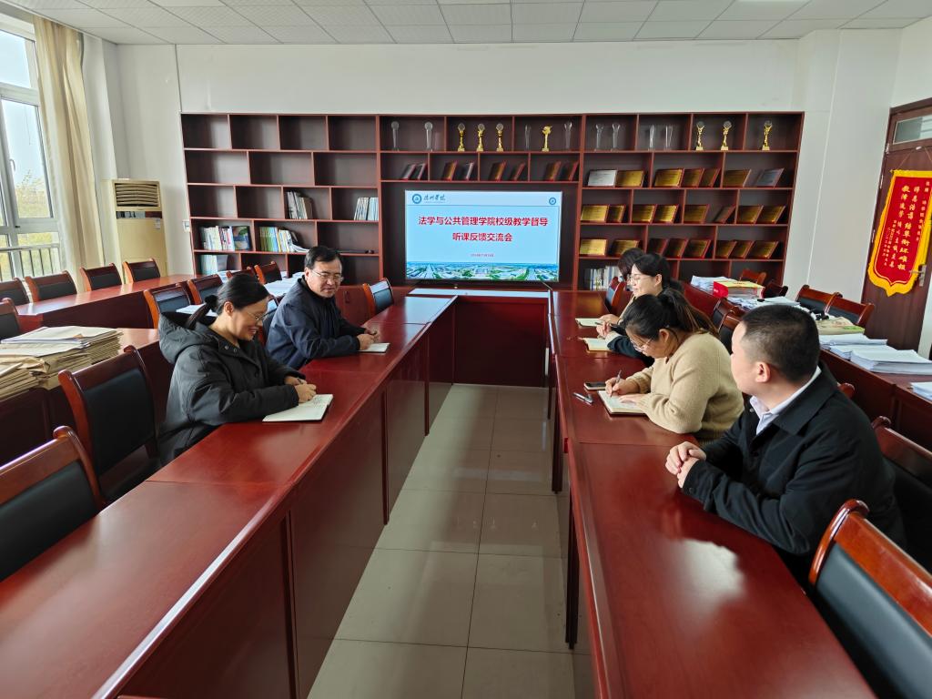 11月19日上午,校教学督导组专家徐世雨教授、张福磊副教授对法学与公共管理学院2024-2025学年第1学期期中教学督导情况进行反馈。德赢AC米兰中国官方网站党政领导班子成员及相关教师参加了会议。