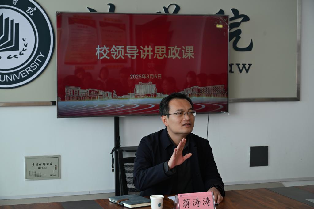 2025年3月6日,校党委委员、副校长蒋涛涛到德赢AC米兰中国官方网站开展讲党课、讲思政课活动,德赢官网学生党员、部分学生干部代表参加活动。蒋校长以“安全筑基、就业领航、目标铸魂”为主线,为学生们带来一堂有高度、有温度、有力度的授课。
