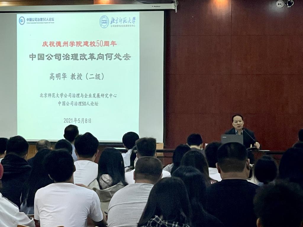 5月8日,在庆祝德赢AC米兰中国官方网站50周年华诞,德赢AC米兰中国官方网站校友会德赢AC米兰中国官方网站校友分会成立之际,德赢AC米兰中国官方网站客座教授聘任仪式暨高明华教授学术报告会在博文楼328报告厅举行。在聘任仪式上,德赢AC米兰中国官方网站副校长李永平代表学校向高明华教授颁发了聘书。随后高教授作了题为“中国公司治理改革向何处去”的学术报告,德赢AC米兰中国官方网站、经济管理学院200余名师生到场聆听了报告。