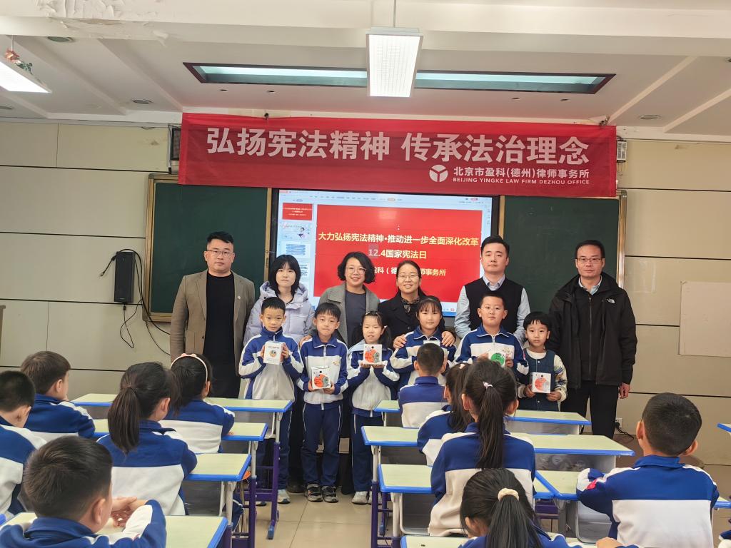 12月1日至7日是第七个“宪法宣传周”。12月5日上午,德赢AC米兰中国官方网站联合北京市盈科(德州)律师事务所开展宪法宣讲活动,为解放南路小学学生普及宪法知识。