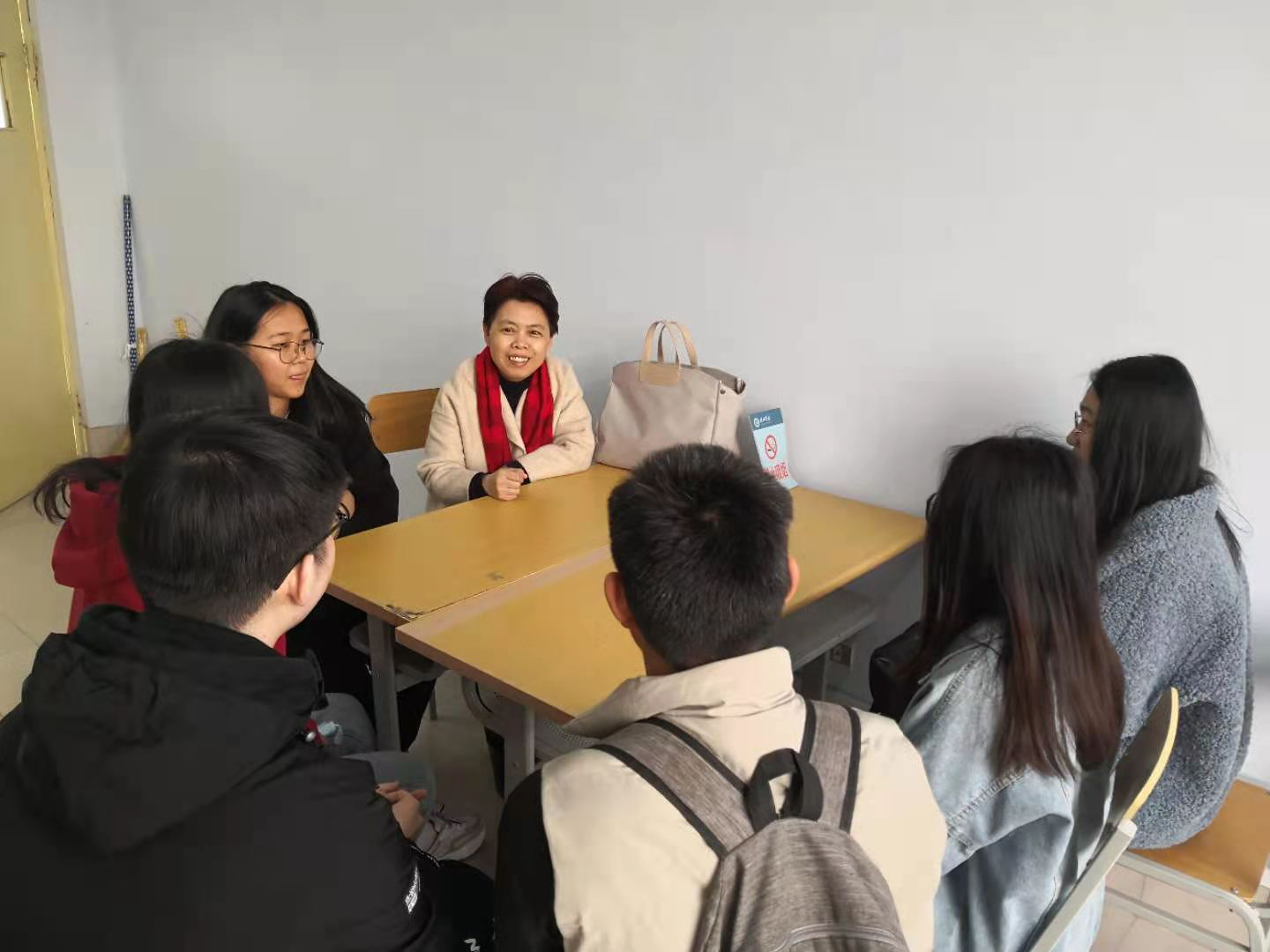 孙桂燕老师深入细致的了解了学生的学习状况,就如何制定学习目标、如何学好专业课、如何准备考研、树立正确的就业观等问题进行了全面的指导。通过座谈,学生明确了目标,鼓足了干劲,大家表示要利用在校学习的宝贵时间,认真学习,不负韶华,把自己锻造成为有用之才。